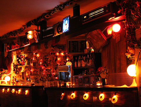 Since the reunification Berlin has developed a lively tradition of cellar-bars and clubs with an indescribably droll furnishing and incredibly cheap prices. In the Fire Bar (aka “The Lounge Room”), directly in the heart of the city, you can still feel the infamous spirit of the “Berlin underground” and enjoy the cheap drinks. An atmosphere like in the beginnings of the 90ies. The small cellar-bar is furnished with old sofas, the walls are decorated with plenty of kitsch and arty lights like in an old living room. The fire place is shown on DVD which definitely can‘t be missing. Smoking is allowed everywhere. Friends, students, artists and well informed backpackers meet here every evening from 8 p.m.
