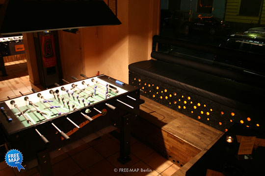 Wer in einer Bar mal richtig Kickern möchte, muss sich normalerweise in Ecken und Nischen mit viel Ellenbogeneinsatz einen Platz freikämpfen. Nicht aber im Platzwart! Diese Bar hat sich auf das Kickern spezialisiert. Längst ist der Sport mit den Miniaturfußballern über sein verrauchtes Eckkneipen-Image hinausgewachsen. Diese Kreuzberger Bar gibt den Kicker-Fans seinen wohl verdienten und gebührenden Platz in Berlins Nachtleben: Der Platzwart ist seit Ende 2009 eine der ersten offiziellen Kicker-Bars in Berlin, und damit eine echte Institution! Die Turniere der ersten Kicker-Ligen werden hier ausgetragen. Die Tische sind umgeben von eigens angefertigten Tribünenrängen, damit die Zuschauer jedes Spiel gut verfolgen können. Die Ergebnisse werden live an die Wand projiziert. Wer's mit dem Kickern nicht so hat - kein Problem: Es geht um's Spaß haben - um's Zusammensein. Für Anfänger steht ein extra Kickertisch bereit - für Fortgeschrittene gibt es zwei Liga-Tische. Die Auswahl an der Bar sollte man sich unbedingt mal genauer ansehen: Hier bekommt man die vielleicht besten Rum-Cocktails der Stadt. Woher das kommt? Die Barkeeper lieben Brasilien und bringen die einheimischen Cocktailzutaten und -Ideen direkt mit nach Kreuzberg.