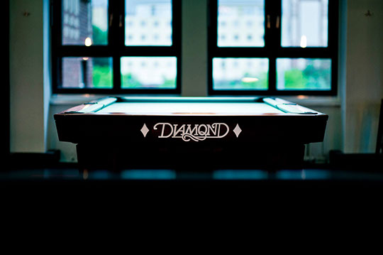 Forget the old time of pool bars where the pool table's sleazes was the coziest thing in place. Michael (alias Heidi)and Patrick was in the damn mood to built Berlin's first adress of playing pool. You could call it the First Lady of pool. They brought the most highborn tables, the coziest couches and the strongest construction workers. Why not pulling down the walls to get Germany's only ten feet pool table inside which got one tonne of weight? They did it.